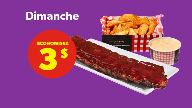 Carré complet de côtes de porc avec deux petits accompagnements pour 15 $