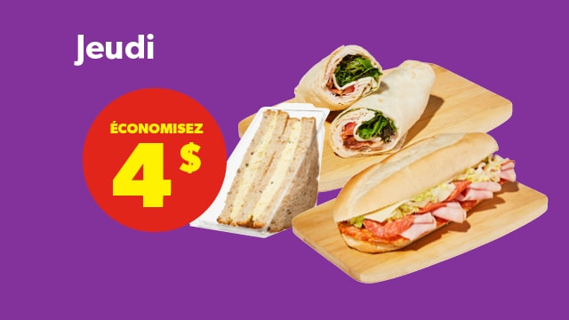Trois sandwichs, roulés ou sous-marins, pour 14 $